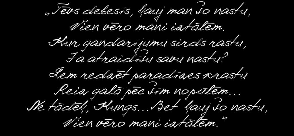Never thought of adding font designer to my resume, but here we are. I was contacted by a relative of mine working on a book collecting and restoring the works the 20th century Latvian writer Broņislava Martuževa. Many of the manuscripts were heavily damaged and had to be deciphered and traced. In order to help speed efforts for future works within foundation, I set out to build a typeface resembling her handwriting as closely as possible.