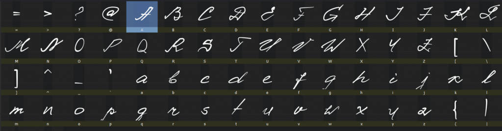 The first prototype was my own handwriting – the very same evening I got the call I set out to tracing my own lettering and seeing if I could get it to work. Finding free open source software wasn’t that difficult, working with it was a bit of a different question. After a bit of tinkering I did have a basic working font on my hands that didn’t look half bad!