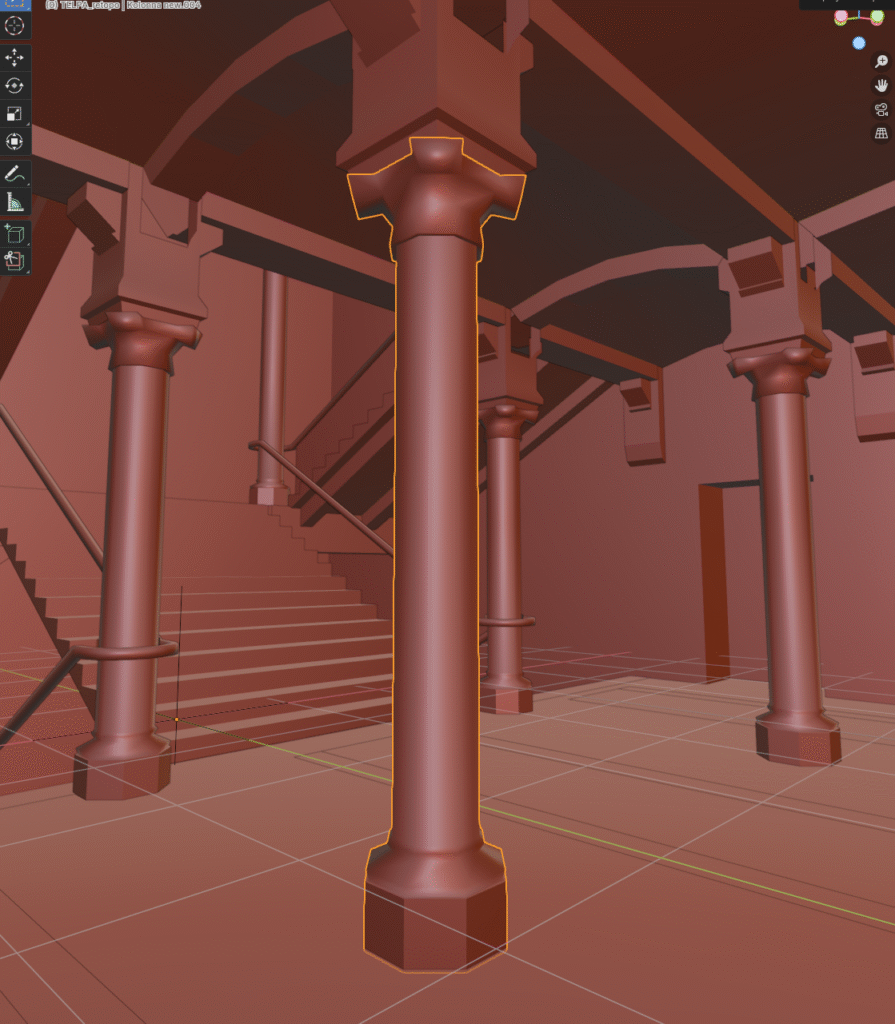 Naturally, most websites aren’t too happy when each element in the scene is 40MB of spiderwebs. So a lot of reduction in terms of polygons happened. In fact most of the actual column part is work of the normal map. Some of the floor plan was also done for the prototype, so it took a lot of guesswork out of lining up all the new bits of mesh.